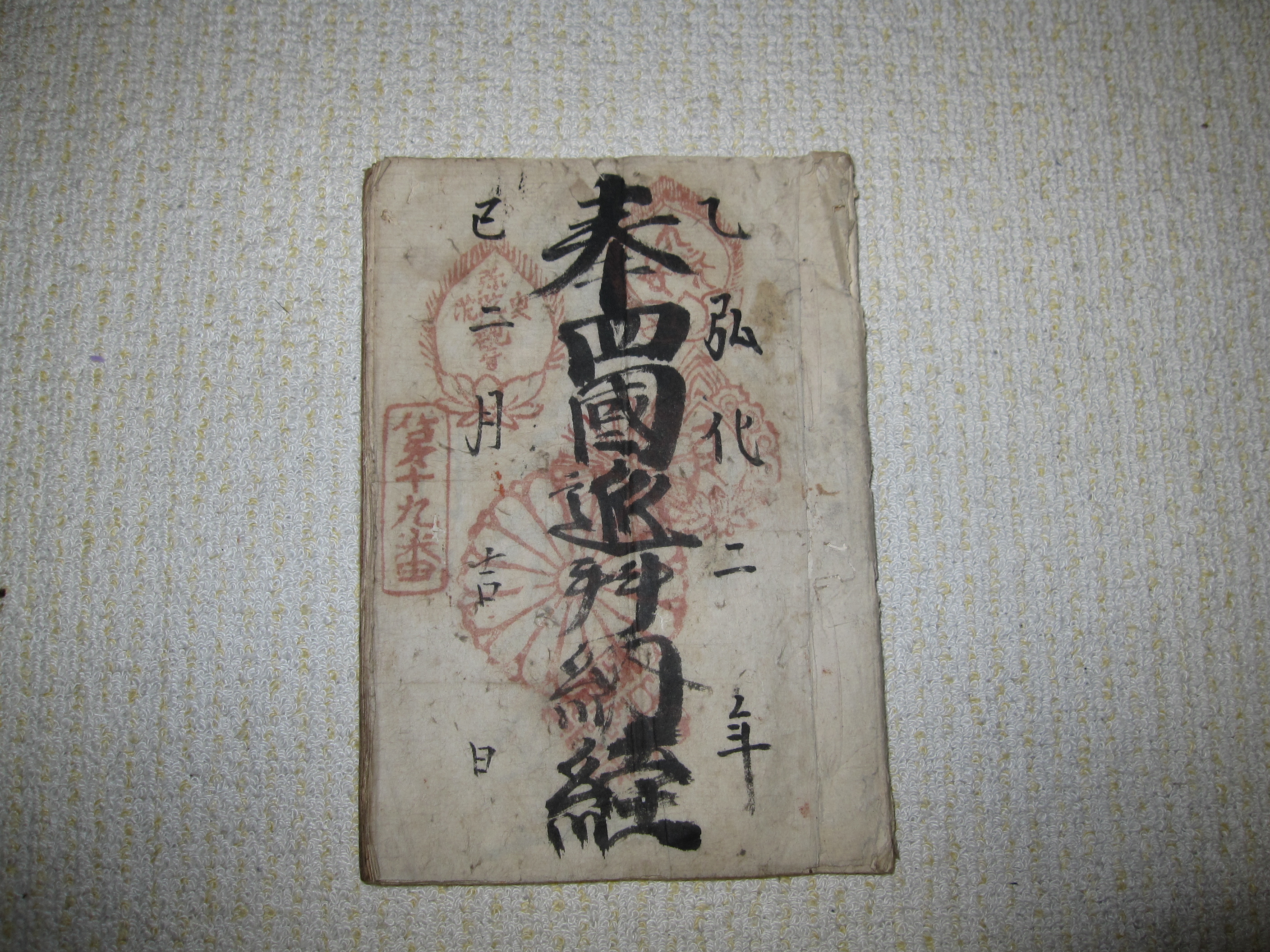 私の手元に、弘化二年と記された遍路納経帳があります。江戸の末期の頃のものです。