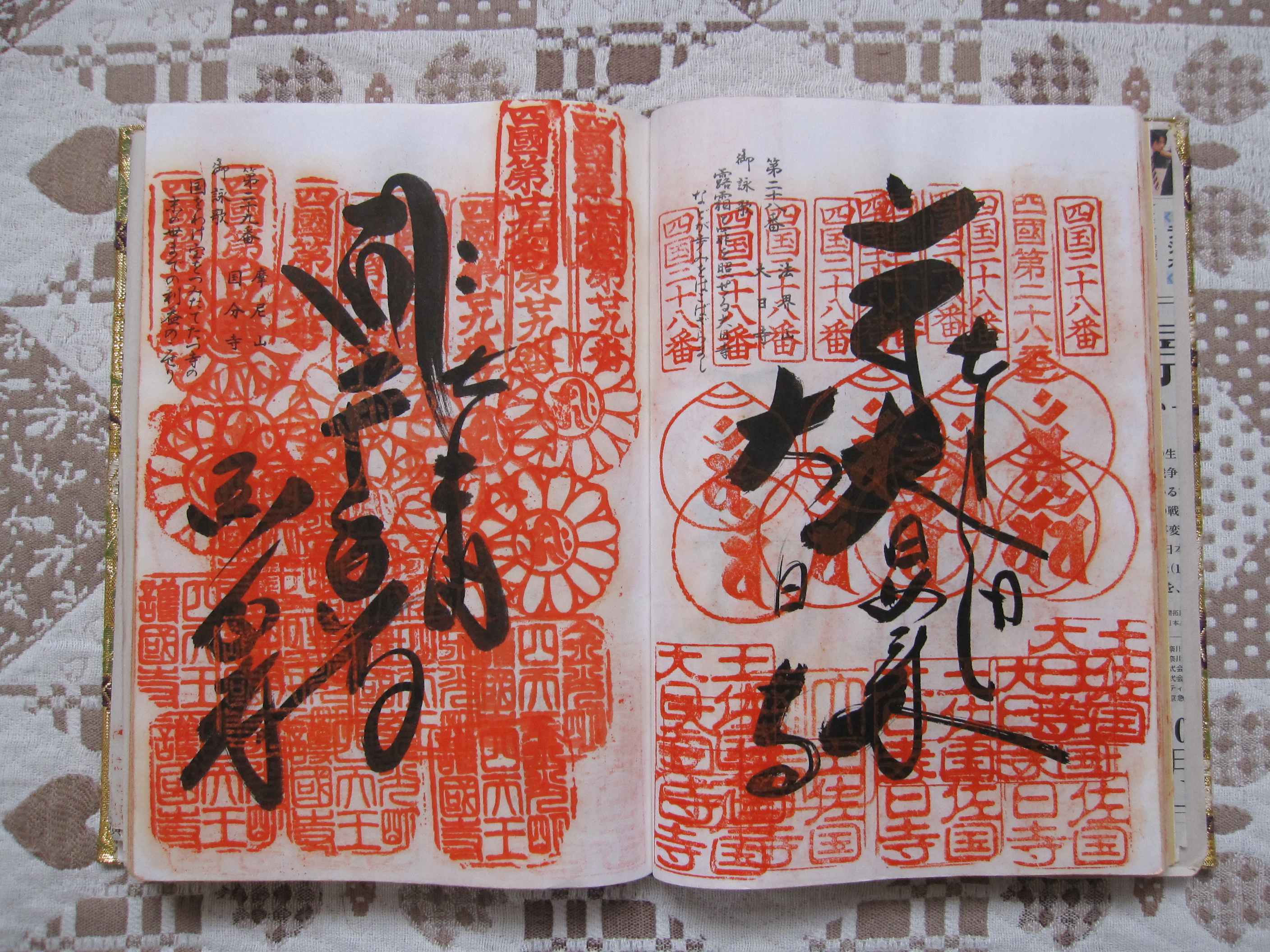 遍路も参拝の回がふえると、納経帳に重ね版を押していきます